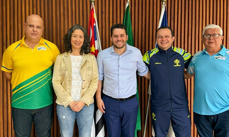 O presidente da Confederação Brasileira de Tênis de Mesa, Vilmar Schindler, e o secretário-geral da entidade, Sandro Abrão, foram recebidos nesta terça-feira (20) pelo prefeito de Santo André, Gilvan Ferreira, pelo secretário de Esporte e Prática Esportiva, Jobert Minhoca, e por Lee Yen Hua, responsável pela prática da modalidade no município.