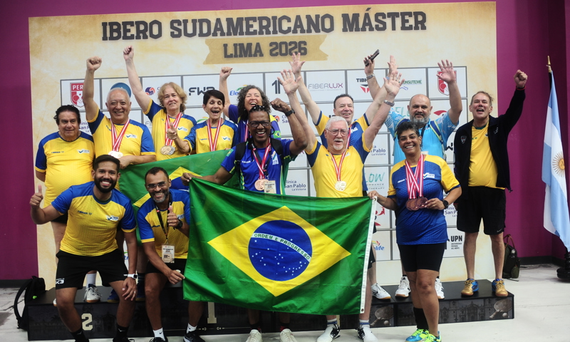 O Brasil teve mais um dia de destaque no Campeonato Ibero-Sudamericano Master 2026, em Lima, no Peru, com presença no pódio nas disputas de duplas - masculinas, femininas e mistas. Agora, a delegação brasileira inicia uma nova etapa na competição, com as disputas por equipes, que se estendem até o dia 3 de abril.