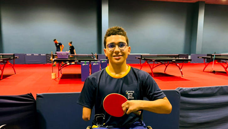 30/01/2026 12h00Com apenas 14 anos, ele iniciou no tênis de mesa paralímpico e sonha em inspirar outros jovens da sua cidade