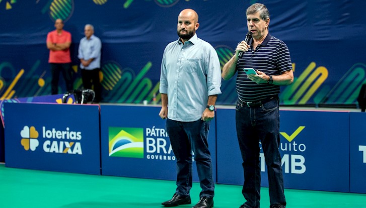 30/03/2022 08h00Dirigente conhece todos os detalhes da organização, esbanja simpatia e até se arrisca em partida contra o presidente da CBTM, Alaor Azevedo