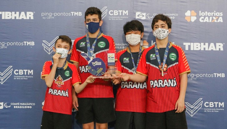 10/12/2020 04h16Atleta de apenas 9 anos faturou o ouro ao vencer os colegas da Associação Independente de Tênis de Mesa, em grupo único